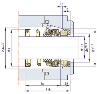 108系列采用橡膠波紋管做次級密封,并兼?zhèn)鬟f扭矩力,通過雙補償環(huán)背靠組對,可成為HQ208密封,常用于潛水泵。